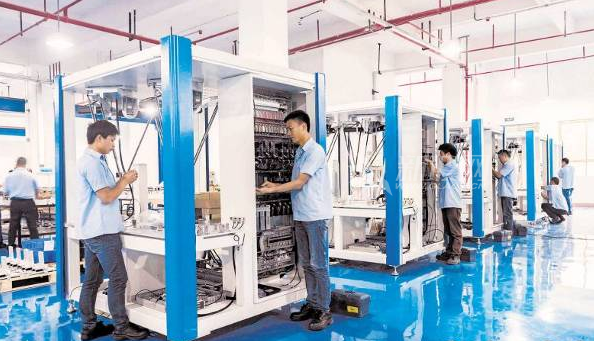 Liuyang Economic Development Zone took the lead in making breakthroughs in the development of Changsha display functional device industry chain. The picture shows the Lansi intelligent robot workshop.